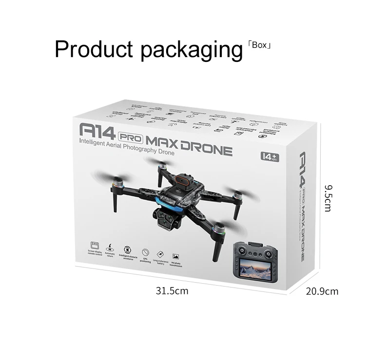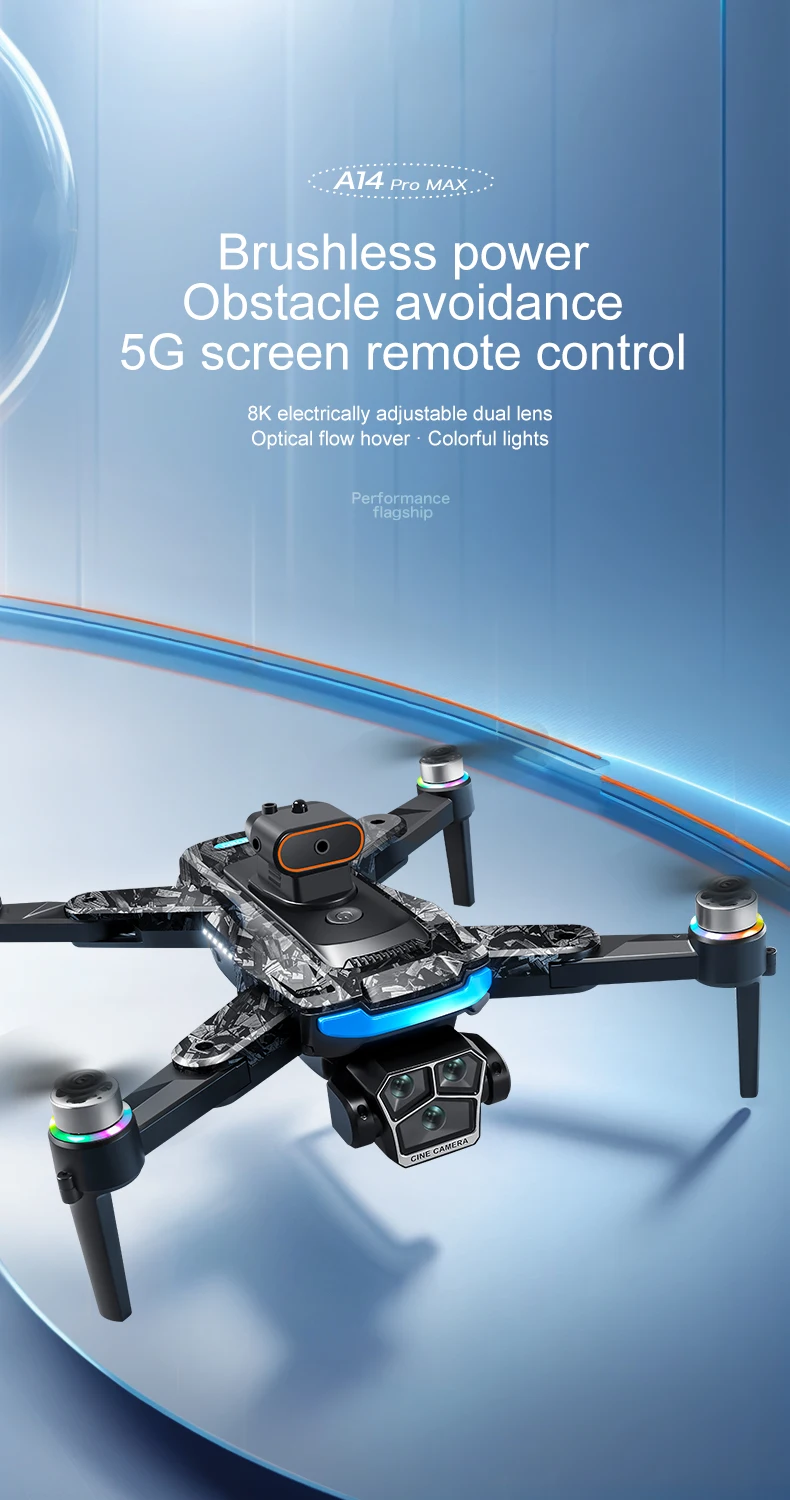 A14Pro Max 8K Drone with GPS & Brushless Motor, Triple Camera EIS, Optical Flow, Obstacle Avoidance, Foldable RC Quadcopter