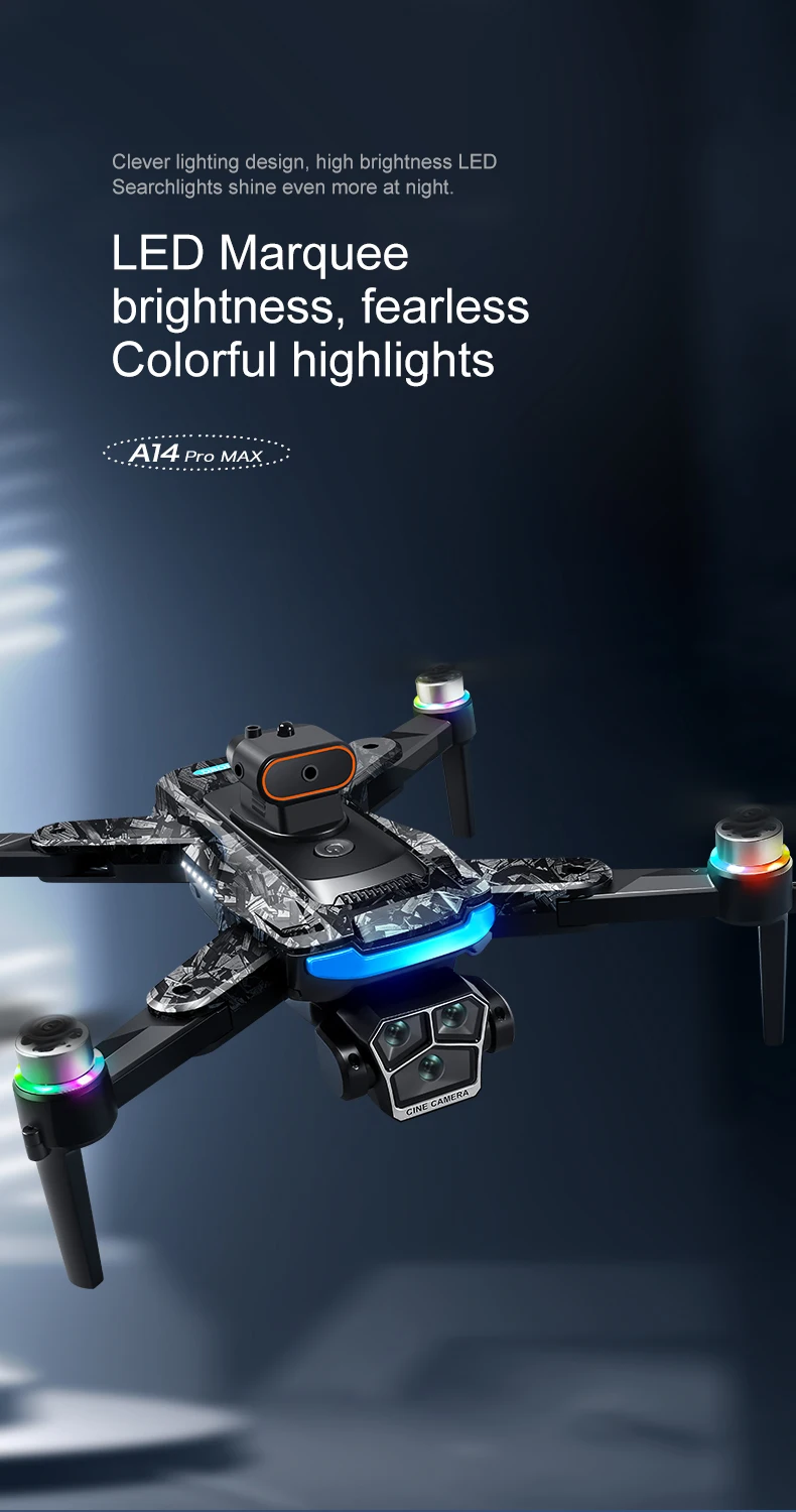 A14Pro max GPS Brushless 8K three Camera Optical Flow Obstacle Avoidance Foldable Quadcopter RC Distance Drone Toys
