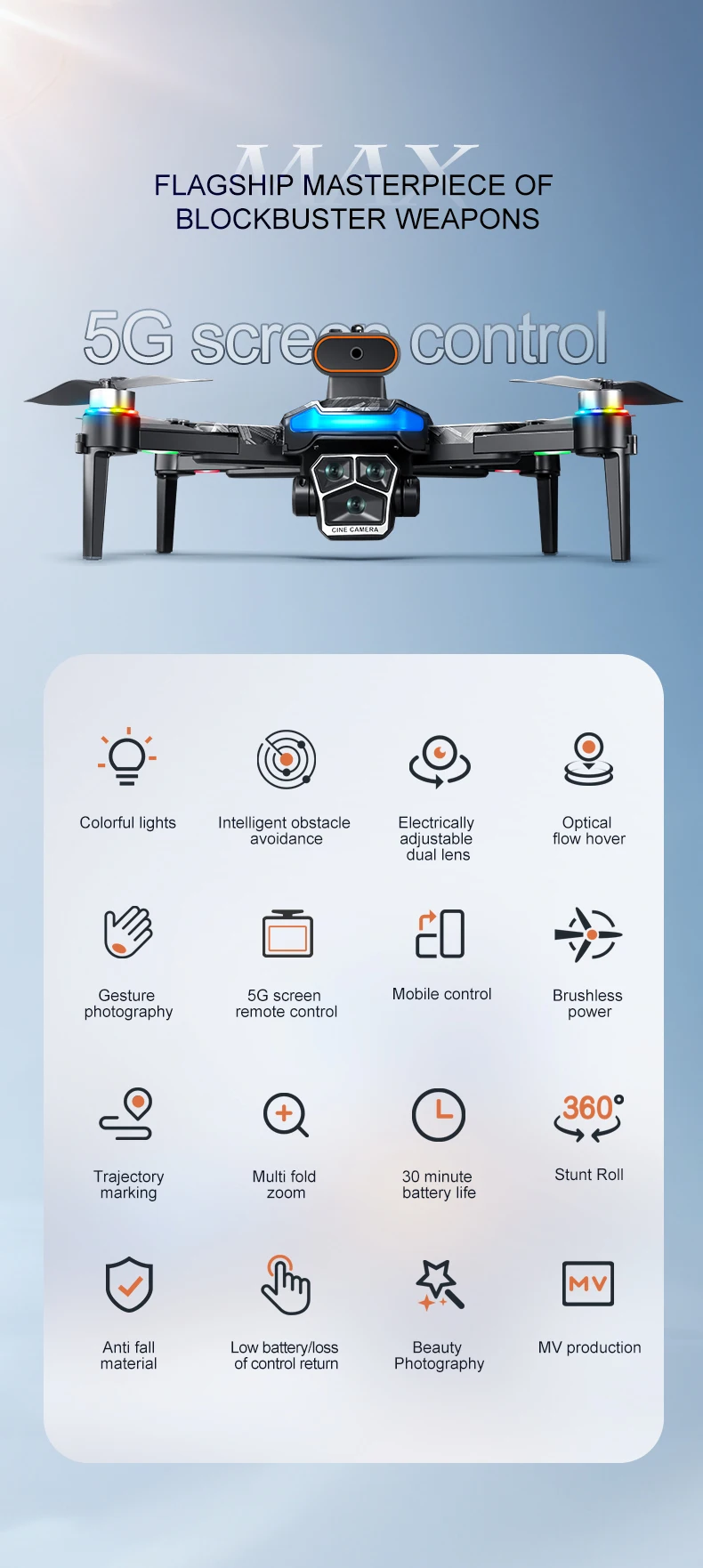 7. 360° flip function (while enjoying the fun of drone, you can also perform stunt rolls)